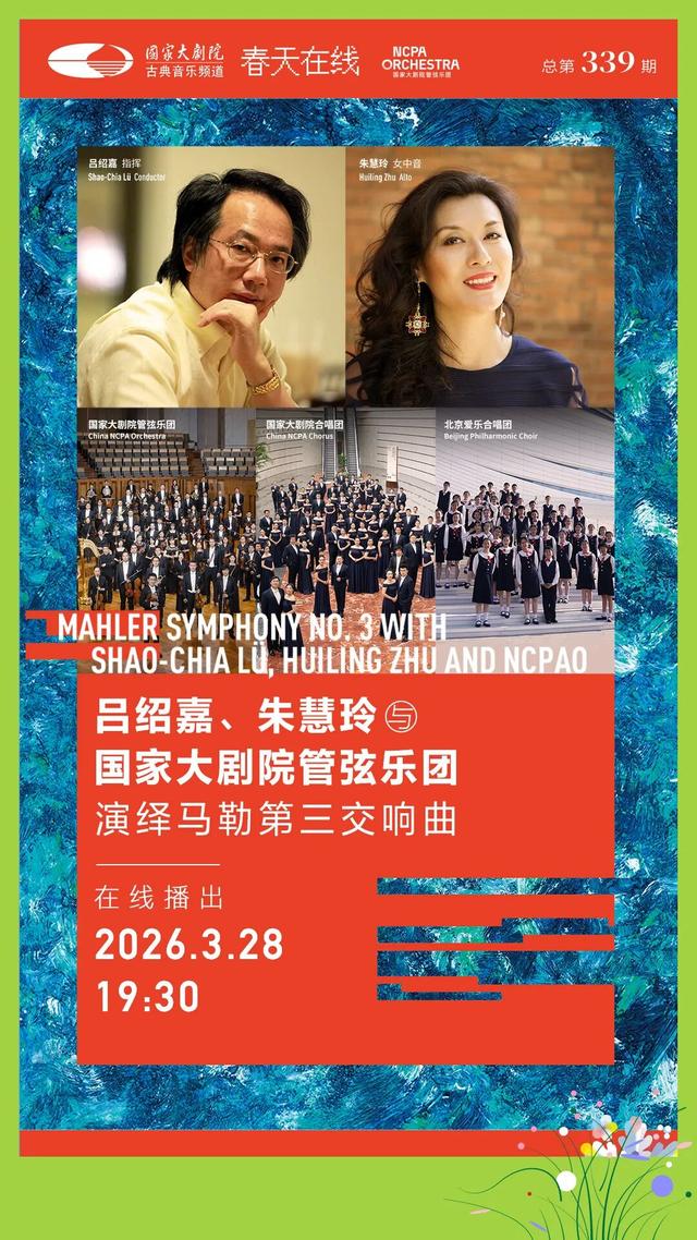 京剧名家汇演《四郎探母》,以唱腔勾连血脉情深;彭家鹏执棒苏州民族管弦乐团,奏响“礼赞新征程”的奋进之声;乔治·格林携手德国萨尔布吕肯室内合唱团,带来跨越时空的浪漫“采撷”;吕绍嘉、朱慧玲与国家大剧院管弦乐团,用马勒第三交响曲叩问生命与自然的永恒命题。