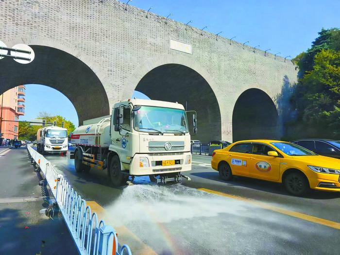 “双节”期间,面对南京南站、南京站等交通枢纽超大客流量考验,南京城管日均出动各类环保作业车辆3000余辆进行清扫作业,同时,市城市管理局指挥调度工作实行假期全天候不间断运转,每日3次电台点名、常态化电话抽查,确保工作指令实时下达、各类问题及时处置,让每一个进出南京的窗口都成为展示城市形象的“最美窗口”。