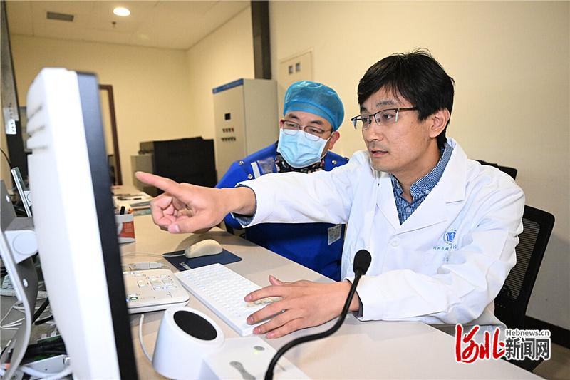 3月3日,阜平县医疗卫生集团中医医院院区导管室,河北医科大学第二医院鹿泉院区心血管内二科医生段金生(右)在指导当地医生。 河北日报记者 田 明摄
