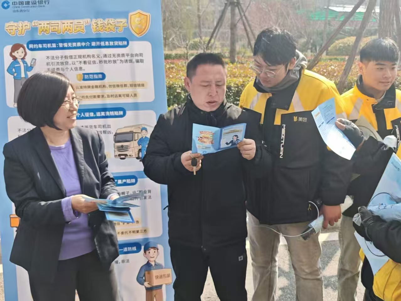 为深入贯彻落实金融消费者权益保护工作要求,切实提升新就业群体金融风险防范意识与自我保护能力,在3·15国际消费者权益日来临之际,3月12日,中国建设银行山东省分行联合济南分行,在建行山东省分行金融教育基地举办“护佑城市新动力,‘骑’心共力,保障金融权益”主题金融教育活动。本次活动精准聚焦外卖骑手、快递员、网约车司机、货车司机等“两司两员”城市新就业群体,以趣味化、场景化、轻量化的宣教形式,将金融知识与暖心服务送到城市奔波者身边,以金融力量守护城市发展新动力。