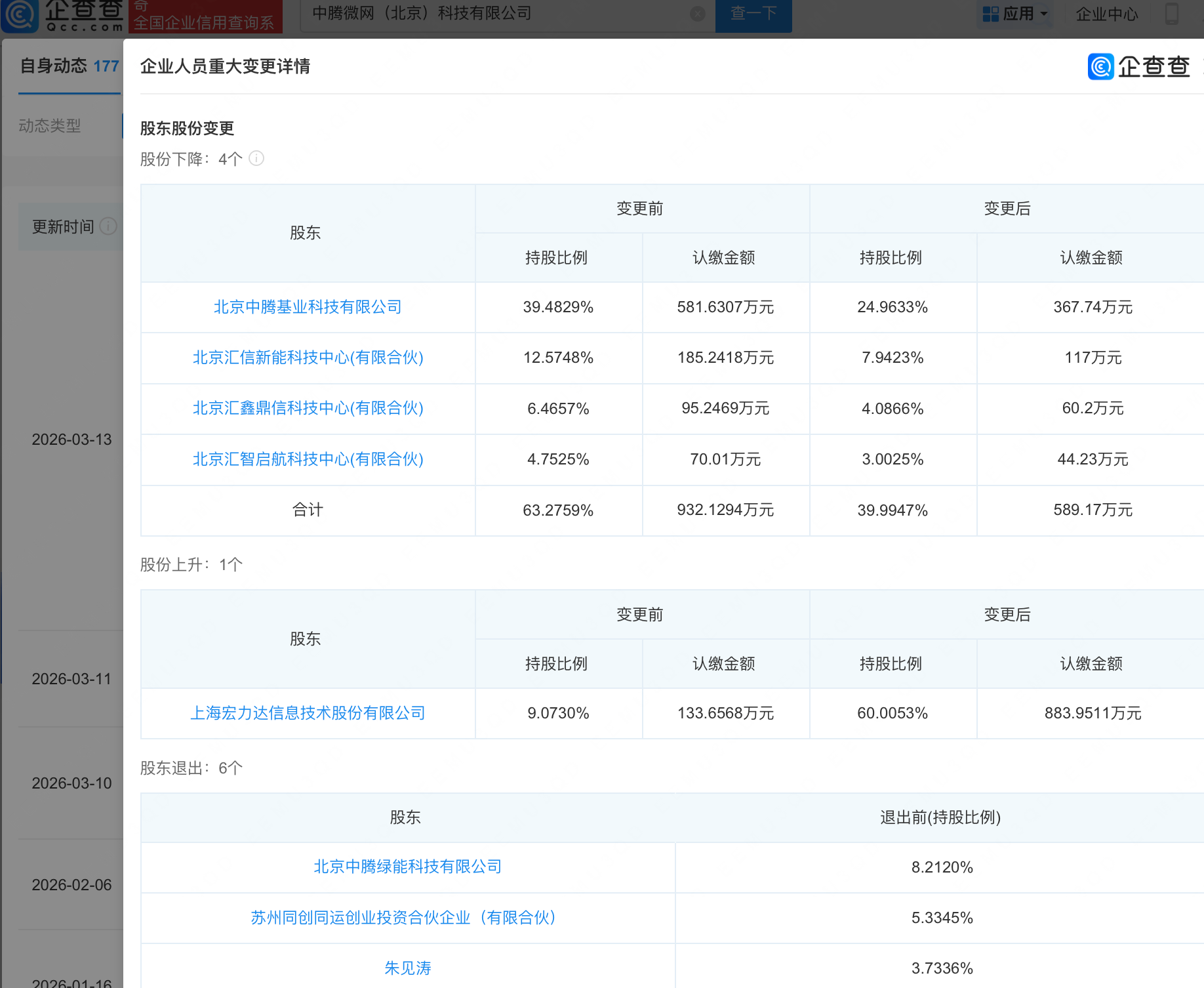 企查查APP显示,近日,中腾微网(北京)科技有限公司发生工商变更,北京中腾绿能科技有限公司等退出股东行列,多名股东持股比例下降,同时宏力达(688330.SH)持股比例由9.07%上升至60.01%,成大股东。企查查信息显示,该公司成立于2015年,经营范围包含:软件开发;信息技术咨询服务;计算机系统服务;计算机维修等。公开信息显示,中腾微网专注于新能源微电网与离网业务。