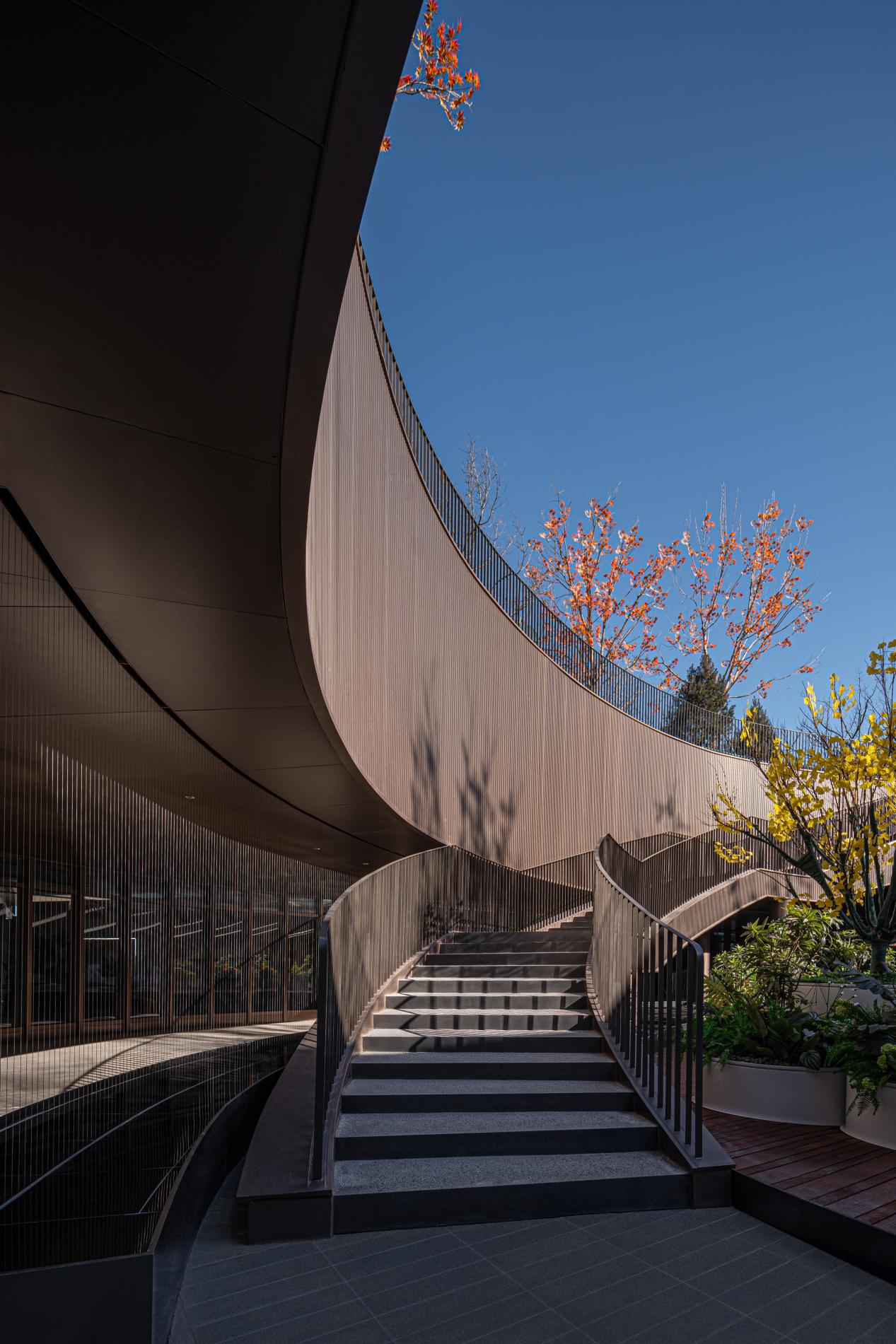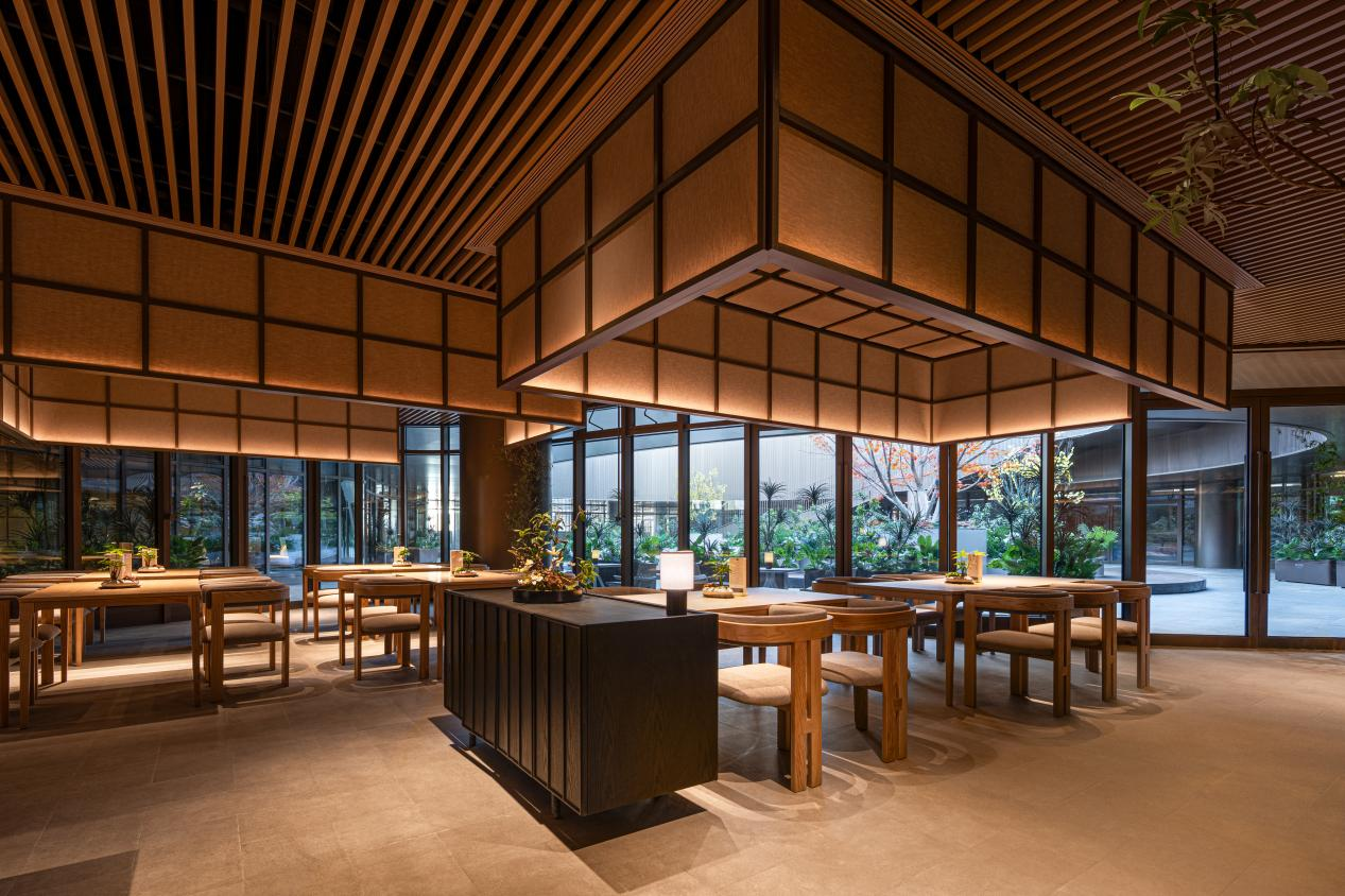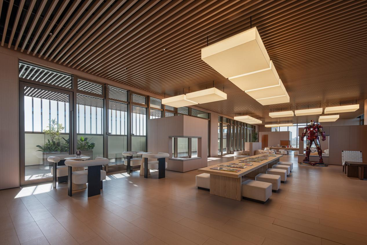 更重要的是,这个会所与“超级生态”形成了无界联动。健身房的大落地窗外是盎然绿意的草阶剧场;咖啡厅的露台与空中森林相连;它将“超级商业”与“超级生态”缝合,让消费与休闲行为,始终沉浸在自然与美的包裹之中。