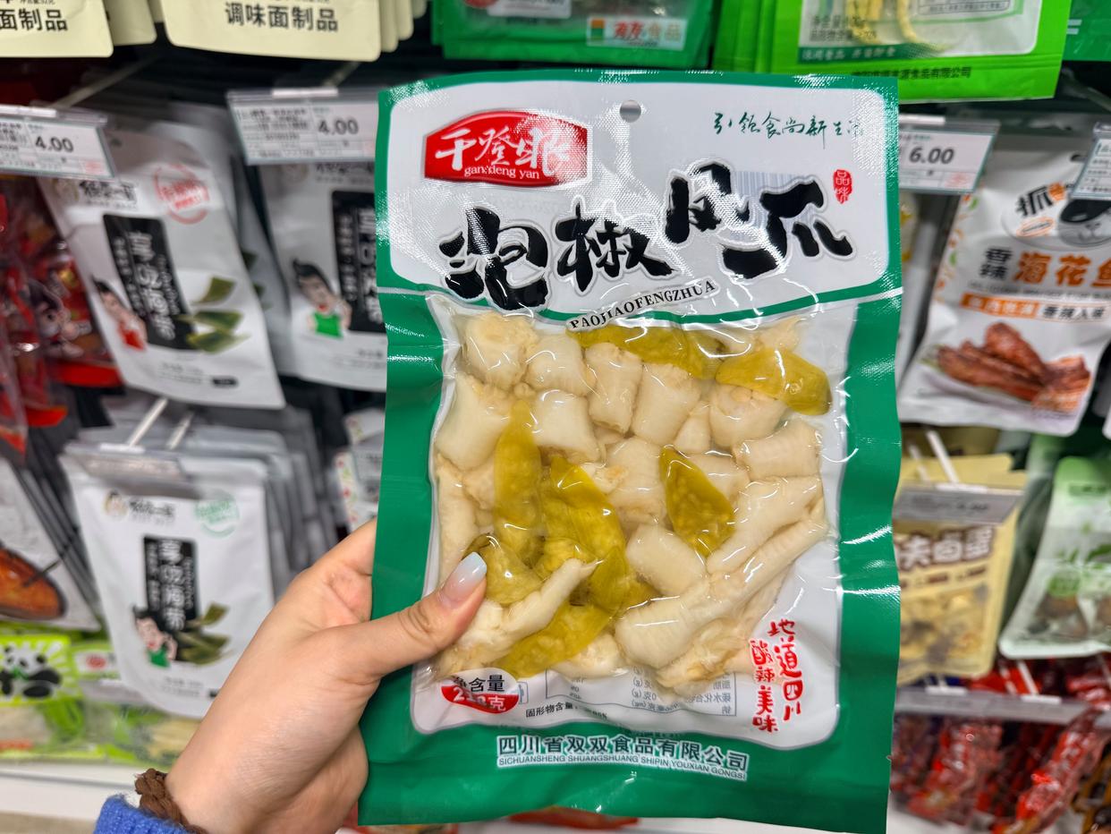 记者在走访中发现,此前央视曝光的涉事泡椒凤爪品牌已难觅踪影。目前市场上在售的相关产品,产地多集中在成都、重庆一带。作为热门休闲零食,有友、辣媳妇、双双、品品等消费者熟知的品牌,依旧占据着货架的核心位置。