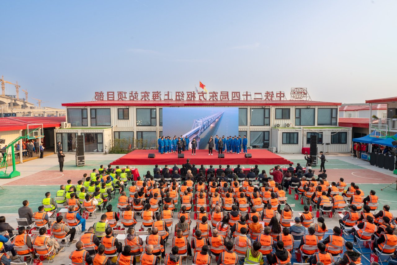 3月19日,由中铁二十四局工会主办的“幸福二十四 出彩铁建人”文艺进工地活动在东方枢纽上海东站项目部上演。300余名一线建设者齐聚一堂,在忙碌的施工间隙,欣赏了一场由职工自编自演、贴近生活的文化盛宴。