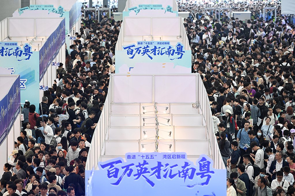 南国春早,珠江潮涌。3月15日上午,广州广交会展馆D区人潮涌动、青春飞扬,“百万英才汇南粤”2026年春季大型综合招聘会在此盛大启幕。作为“十五五”开局之年广东首场高规格招才引智盛会,本次活动以“粤聚英才粤见未来”为主题,是响应全国两会上广东发出的“再吸纳超100万名高校毕业生”号角的“重头戏”。活动现场有近2000家头部单位,提供超8.5万个优质岗位,规模与质量均创历史新高,首日就有近12万名求职者入场,体现了经济大省挑就业大梁的责任与担当,诚邀天下英才投身广东现代化建设新征程。
