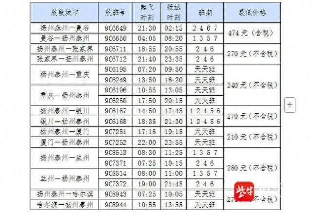 记者了解到,截至目前,春秋航空扬州泰州出发夏秋航季计划执飞21条航线,覆盖国内外19个目的地,往返周计划座位量超4万座,以充足运力保障扬泰市民商务、文旅等出行需求。国内方面,3月31日起,恢复扬州泰州至张家界航线,每周3班,打通春日文旅出行通道;加密重庆航线至每周14班,同步加密银川、厦门、兰州、哈尔滨等热门航线,提升区域通达性。国际方面,4月11日起,新增扬州泰州至曼谷往返航线,每周4班,丰富市民出境游选择。