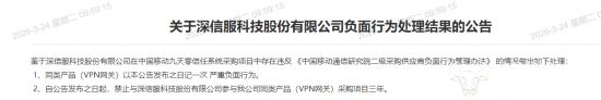 二是,自公告发布之日起,禁止深信服/三未信安参与中国移动通信研究院同类产品(VPN网关)采购项目三年。