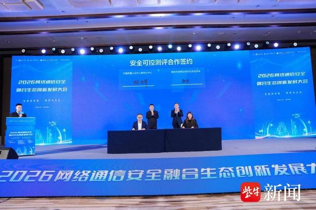 扬子晚报网 3月24日讯(记者 姜婧仪)近日,2026网络通信安全融合生态创新发展大会在南京成功举办。大会以“安测促发展,积聚创未来”为主题,聚焦网络通信安全领域检验检测认证的科技创新与产业生态深度融合,集聚检测检验、网络安全、人工智能产业链链主单位,以及能源、交通、水利、环保等数智应用场景龙头企业,发布多项重磅成果、落地系列签约合作,为加快新质生产力转化应用、助力南京6G之城建设、深入实施创新驱动发展战略注入强劲动能。