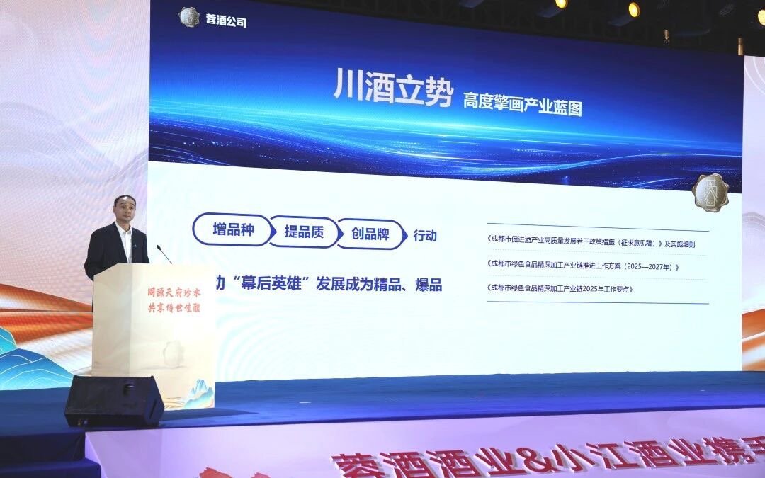 作为成都白酒产区核心国有控股平台,蓉酒公司于2025年11月成立。活动上,公司明确发展定位:以品牌战略为引领,强化资源统筹,构建5个“1+N”产供销体系,力争成为中国白酒成都产区国有领军企业,推动成都酒业从“产区集聚”向“品牌跃升”迈进。