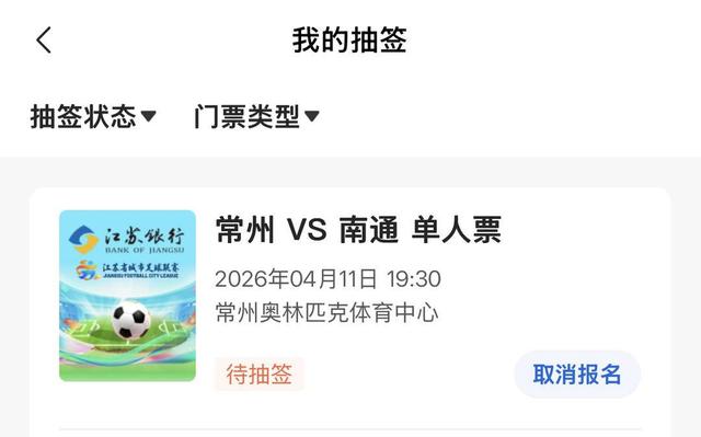 3 月 25 日上午 ,2026年江苏省城市足球联赛(以下简称“苏超”)首轮免费门票抽签活动已正式启动。扬子晚报/紫牛新闻记者通过江苏银行 App 相关界面看到,报名通道开通不到 1 小时,已有数千球迷参与了此次报名。