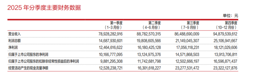 单季度来看,2025年第四季度公司实现营收948.80亿元,同比增长29.54%,环比增长9.70%;归母净利润139.14亿元,同比增长80.86%;扣非归母净利润165.97亿元,同比增长108.89%,环比增长32.75%,四季度扣非业绩超市场此前预告,为全年业绩收官画上圆满句号。