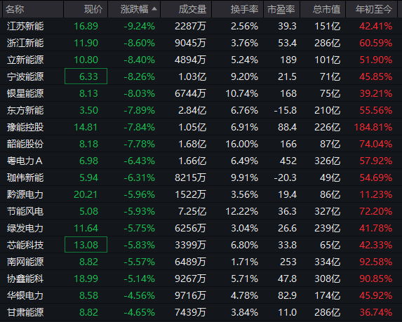 电力股早盘走弱,江苏新能、立新能源、宁波能源等多股跌超8%。