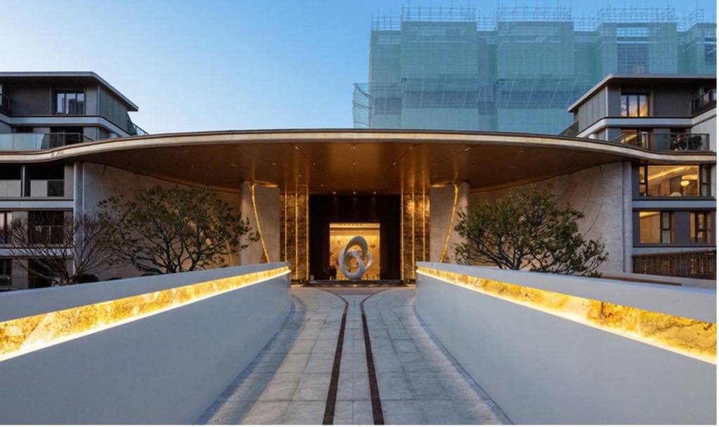 走进西派云间,南上海创新型的双桥归家系统,把人流和车流温柔地分开。步行的人从桥上缓缓走过,脚下是流淌的河水。驾车的人驶入地库,迎接他的是另一重惊喜——对标伦敦The Whiteley酒店的同款中央车站。这个挑高约3.6米的地下空间,打破了传统地库的刻板印象。环岛式落客区、整石雕塑静立、伊万翡翠奢石墙面温润如玉、五万片小弹石手工密拼成地面艺术景观。