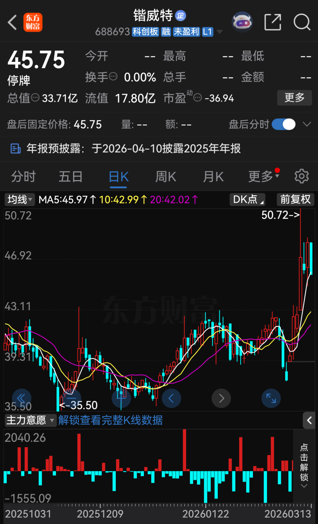 锴威特针对上述交易,自3月16日开市起停牌,计划自3月30日开市起复牌。截至3月13日收盘,锴威特股价报45.75元/股,跌幅达5.02%,总市值为33.71亿元。