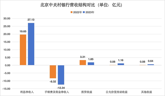 进一步来看,中关村银行一直还是走靠吃息差推动营收增长的“老路”,以2023年为例,该行利息净收入同比大增38.07%至27.13亿元,既然靠揽储吃利息就有这么高的收入,那为何最终的总营收却只有18.43亿元呢?