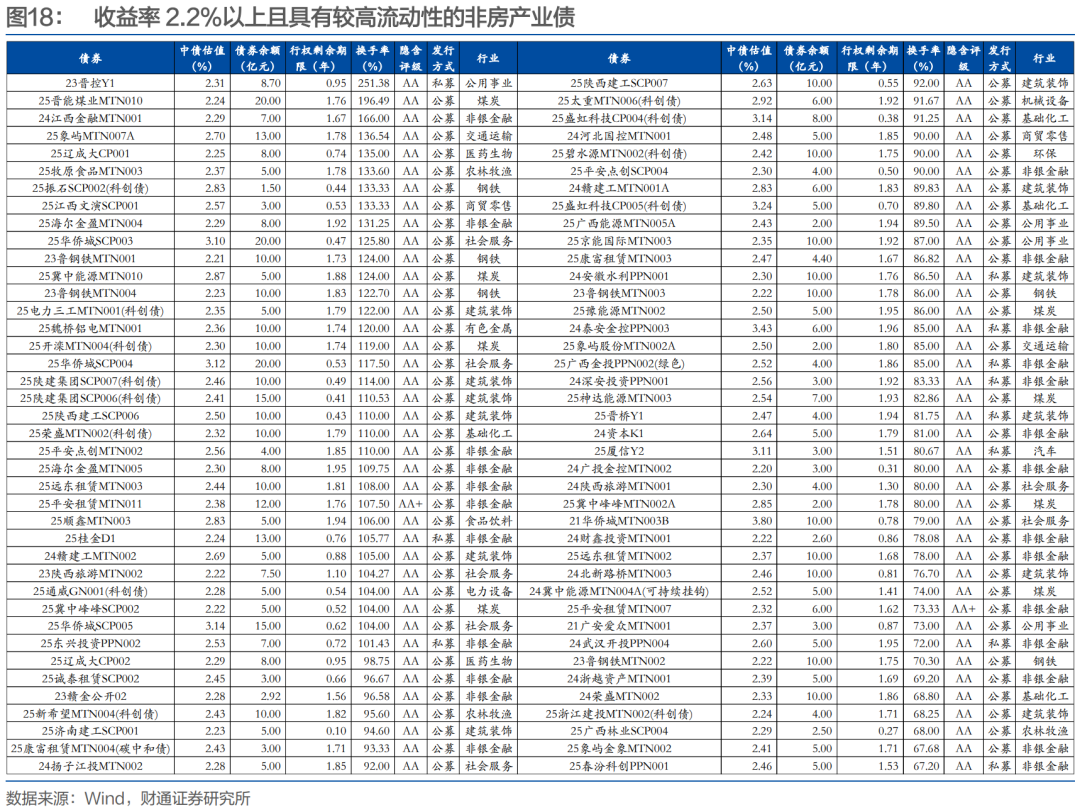 我们同时考虑收益和流动性,选取了部分剩余期限2年以内且最新估值大于2.2%的债项,以供参考。