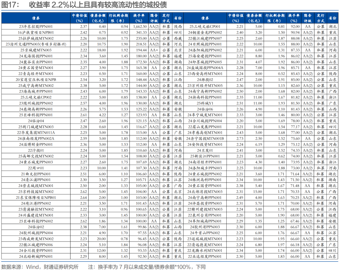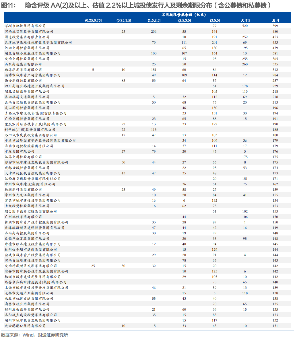 从主体层面来看,我们主要关注2Y左右估值2.2%以上债券存量较大的主体,如豫航空港、津城建、鄂联投、珠海华发、西安高新、科学广州等。
