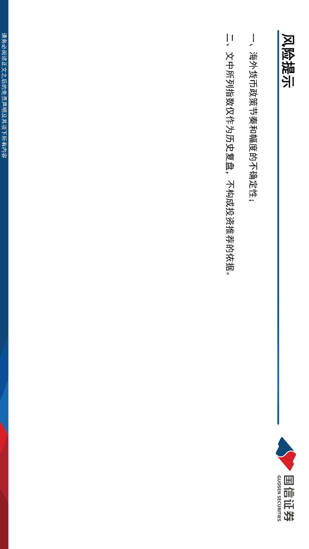 风险提示:海外货币政策节奏和幅度的不确定性;文中所列指数、个股产品仅作为历史复盘,不构成投资推荐的依据