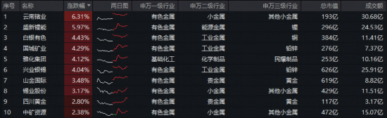 细分方向来看,直接配套低轨卫星组网需求,专注空间太阳能电池用锗晶片建设项目,国内锗产业链最完整、产销量第一的云南锗业领涨超6%;受益于锂电池板块走强,锂业龙头盛新锂能涨近6%;黄金股亦有亮眼表现,山金国际涨超3%,四川黄金涨逾2%。权重股紫金矿业、中国铝业涨逾1%。