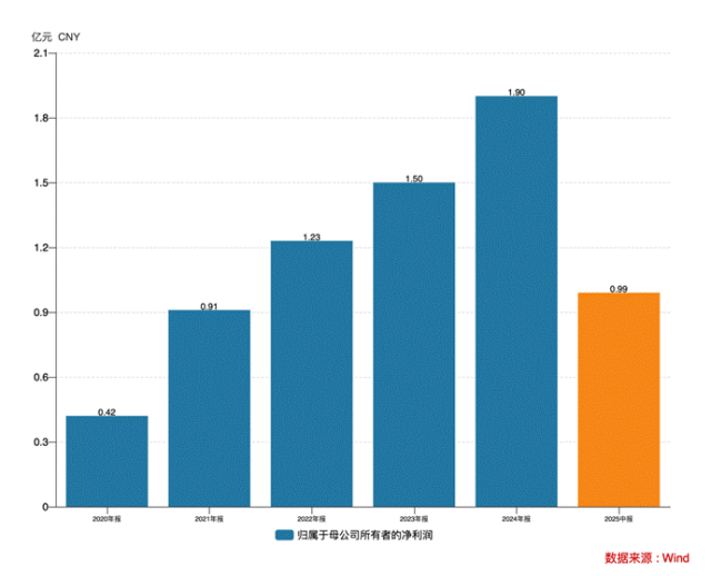 再加上期间费用率的持续优化,斯菱股份归母净利润由2020年的0.42亿元增至2024年的1.9亿元,4年时间涨近3.5倍,年复合增速达到了45.84%,显著高于汽车零部件行业平均水平。