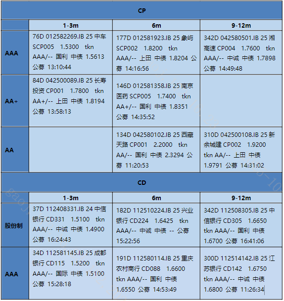 【1.6】25静安置业SCP001 0.73Y 4.5e AA+/-- 【1.5-1.8】