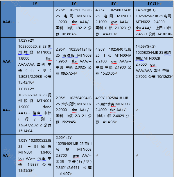 【2.19】25湖北宏泰MTN005 3Y 10e AAA/-- 【1.7-2.5】