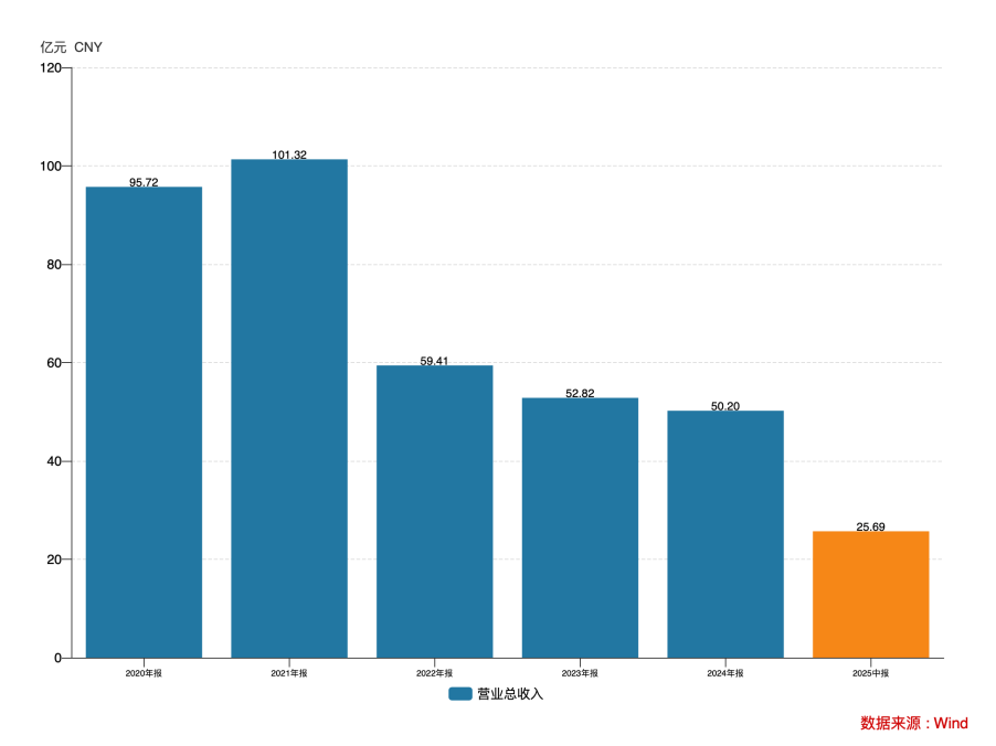 2022年的沈阳化工营收仅剩59.41亿元,相较2021年同期的101.32亿元而言近乎腰斩,之后的2023、2024年呈逐年下滑态势。