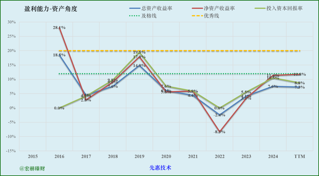 竞争优势是个复杂思维研判体系,但可以简单的从双R指标中管中窥豹,即上图中的ROE(柱图)和ROIC(红折线)能始终站在良好线&优秀线之上的公司值得你战略跟踪研究。