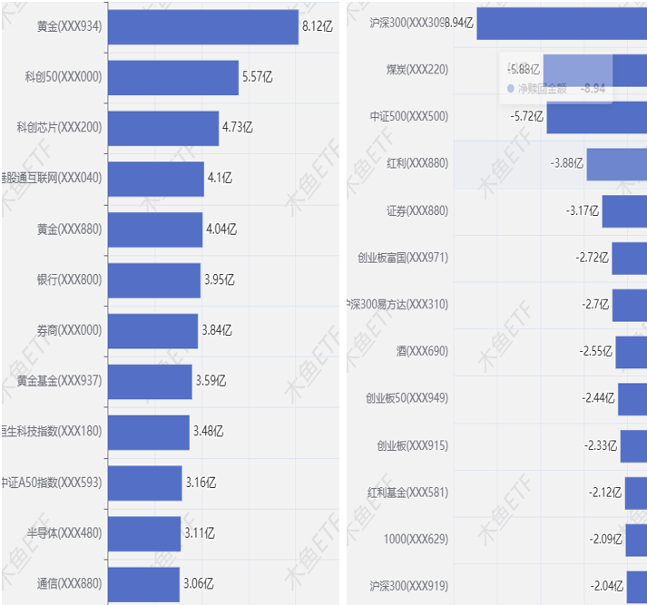 昨日ETF申赎比较平淡,黄金、科创、港股科技、券商等保持流入,可惜黄金刚入场就套了3个点。而宽基、煤炭等小幅赎回。