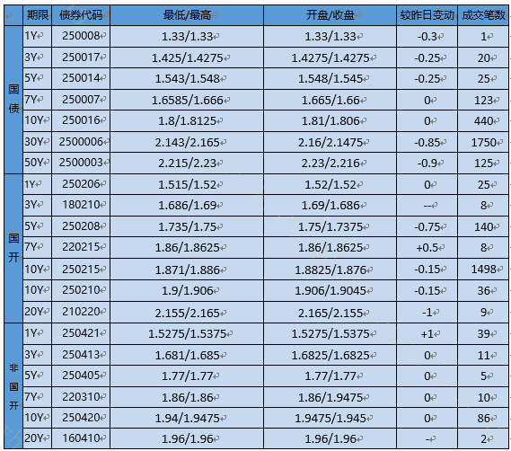 2Y 250202X19 加权利率 1.5311% 全场倍数 3.66倍 边际倍数 50倍