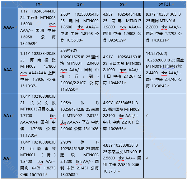 【2.13】25新华水力MTN003A 3Y 5e AAA/AAA 【1.75-2.55】