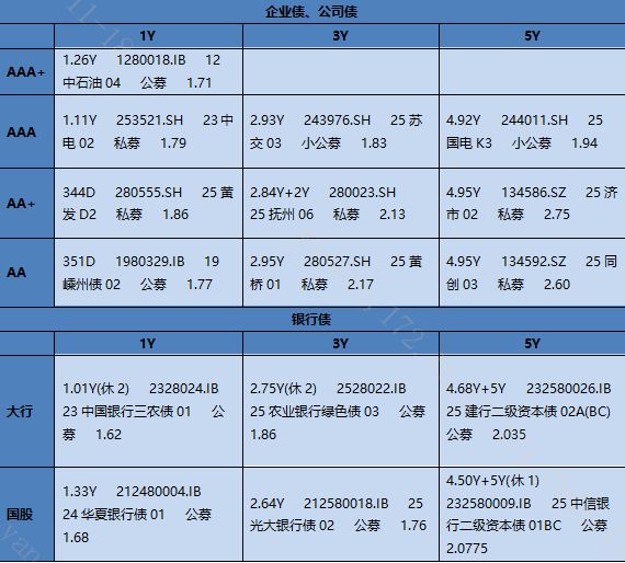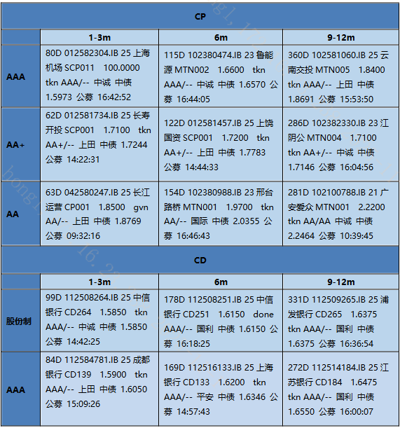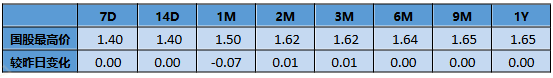 今日存单交易情绪一般,但买盘相比昨日有一定增强。全期限来看国股成交,明年2月底到期1.585;明年5月底到期1.615;明年8月底到期1.635;明年11月底到期1.635。