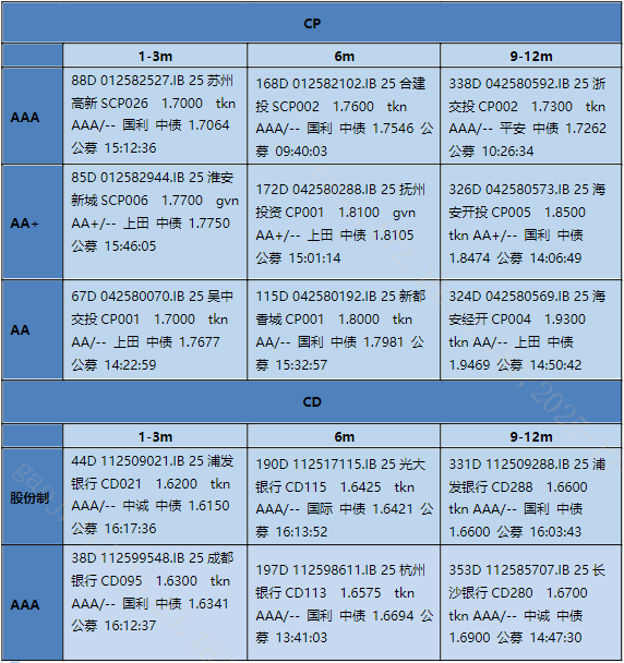 1Y需求尚可,费后低二级1.5BP发1.5928,倒挂一般;