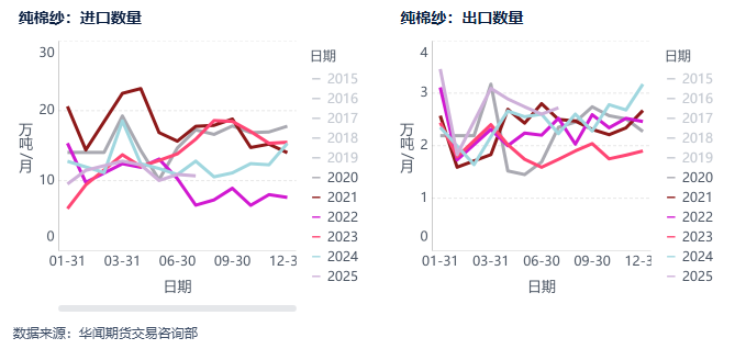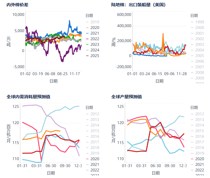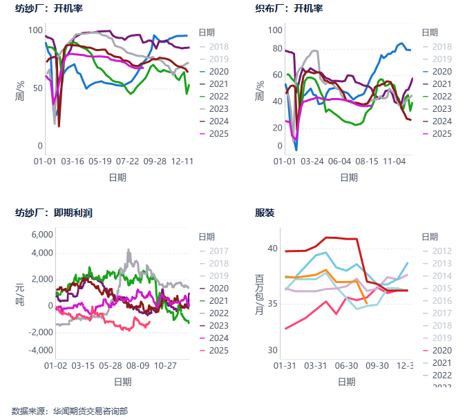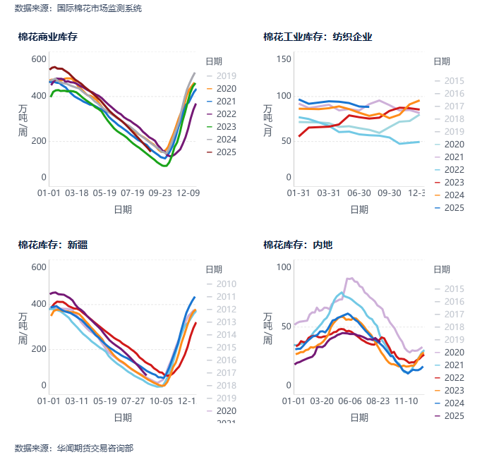 同时,下游需求正在向上游传导,导致上游棉花库存下滑很快。据全国棉花交易市场统计,截止 2025 年 7月底棉花商业库存230 万吨,同比下降超15万吨。