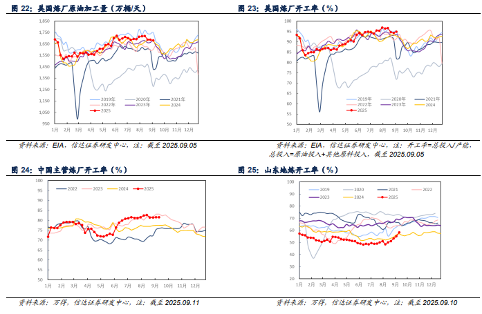 中国炼厂:截至2025年09月11日,主营炼厂开工率为81.59%,与上周持平。截至2025年09月10日,山东地炼开工率为58.39%,较上周上升3.33pct。
