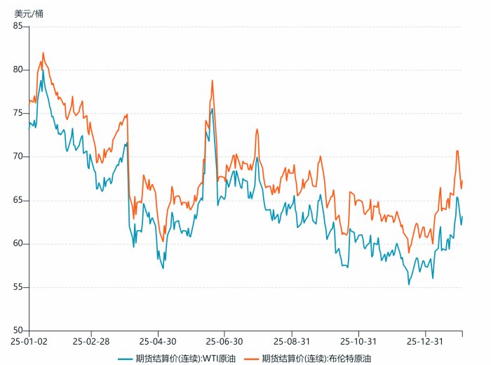 展望2026年国际油价走势,王海博预计,在基本面主导的情况下,布伦特原油期货的均价将处于每桶60美元至65美元的区间;地缘冲突会是市场最大的变数,在地缘冲突的主导下,这一指标可能会攀升至每桶70美元至75美元。