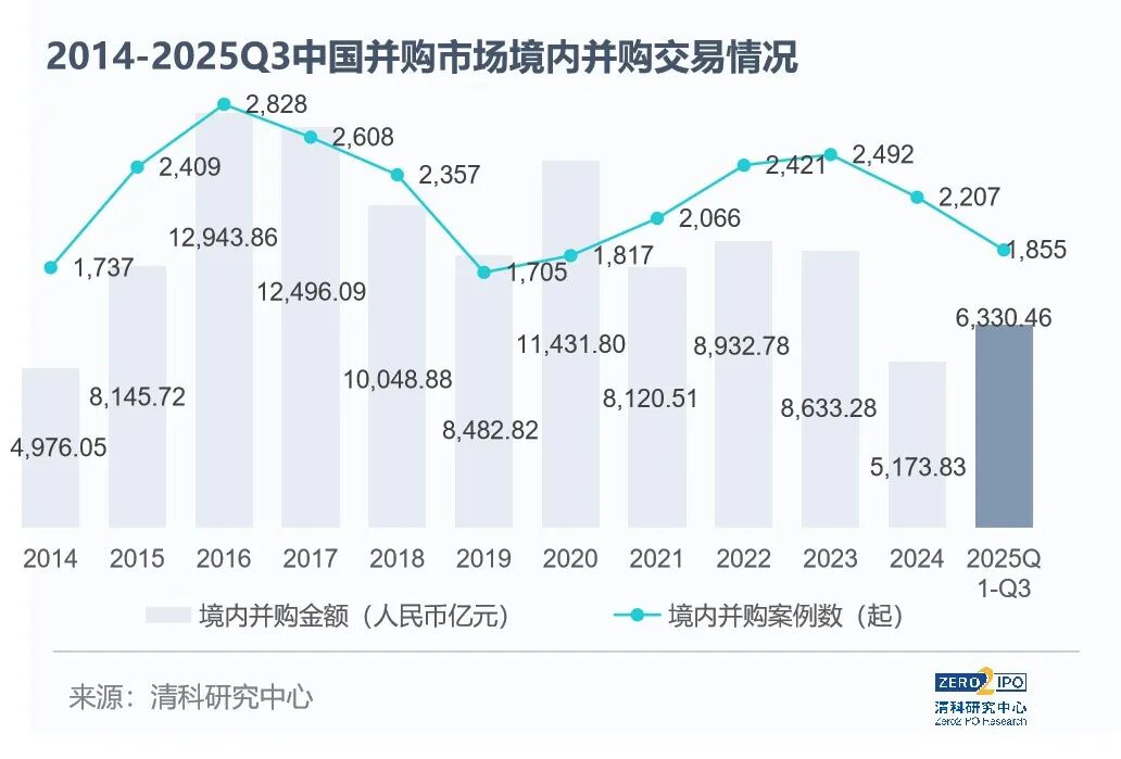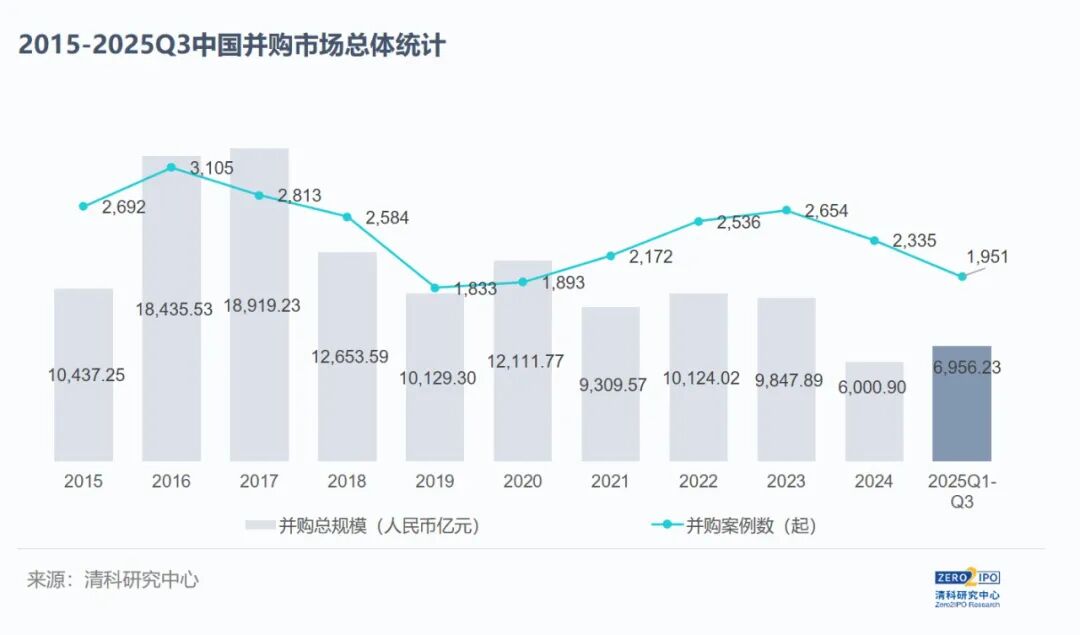 “并购六条”落地一年来,我国并购市场政策环境持续优化,政策包容度显著提升,市场对于并购重组的关注度不断提高,国资、产业资本、上市公司、VC/PE机构等各类主体参与并购的热情持续提升。在全球产业链格局深度调整和国内经济结构转型背景下,行业竞争逐渐由增量扩张转向存量整合,并购重组成为优化资源配置、提升产业集中度、推动结构升级的重要抓手。2024年以来,深圳、上海、安徽、广州等地方相继发布关于通过并购重组支持地方经济转型发展的行动方案,鼓励本地上市公司、龙头企业或“链主”企业、国有企业等通过并购重组实现创新突破发展,随后多地国资、产业资本、上市公司等积极发起设立并购基金,通过“基金+产业”模式支持地方经济转型。2025年5月,《上市公司重大资产重组管理办法》正式发布,对上市公司进行重大资产重组的行为给到了主要维度的政策性实质支持,进一步提升了并购重组监管制度的适配性、包容性、便捷性。在政策推动下,2025年前三季度上市公司披露并购事件数量显著上升,各地国资和VC/PE机构也加快了在并购市场的布局,积极设立并购基金、参与并购交易。2025年9月22日,国务院新闻办公室举行“高质量完成‘十四五’规划”系列主题新闻发布会,证监会主席吴清表示,下一步将增强多层次市场体系的适配性,以科创板、创业板“两创板”改革为抓手,推进发行上市、并购重组等制度改革,更大力度支持创新,更好支持不同行业、不同类型、不同阶段的优质企业通过资本市场茁壮成长。总体来看,随着监管层对并购重组的支持与引导,我国并购市场运行机制正趋于完善,市场活力不断释放。清科研究中心将在下文就并购市场核心动态进行分析,更多中国股权投资市场分析内容,欢迎关注《2025年前三季度中国股权投资市场特点与趋势解读》。