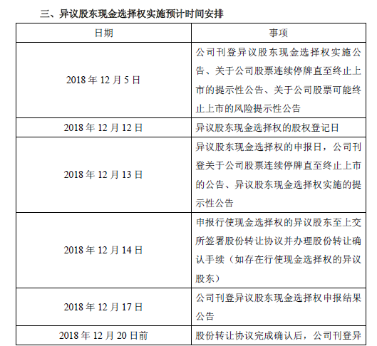 异议股东现金选择权实施预计时间安排 图片来源:公告截图