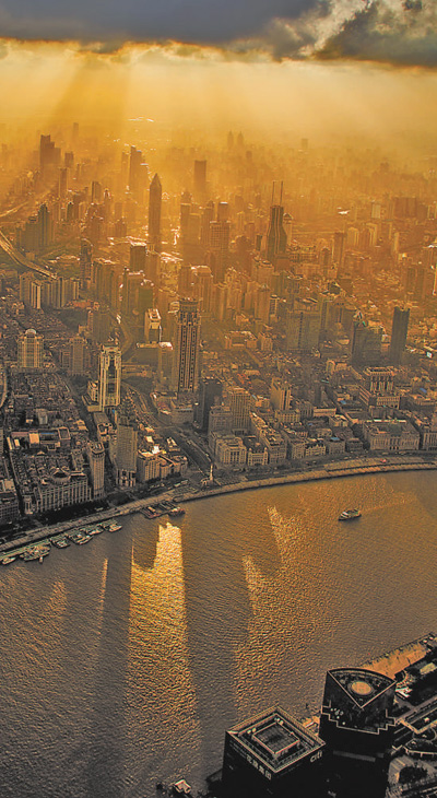 摄于上海中心大厦,晚霞中的黄浦江畔。