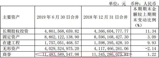 2019年上半年,上海医药商誉为114.84亿元,2018年末为113.45亿元,增幅1.22%。上海医药表示,本年度增加的商誉主要系购买重庆上药慧远药业有限公司所致。