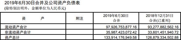 2019年上半年,上海医药资产总计1339.14亿元,2018年末为1268.79亿元,增长5.54%。其中,流动资产为979.27亿元,非流动资产为359.87亿元。