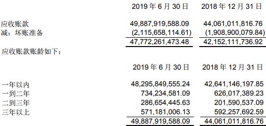 2019年上半年,上海医药应收账款账面价值为477.72亿元,2018年末为421.52亿元;账面余额为498.88亿元,2018年末为440.61亿元。