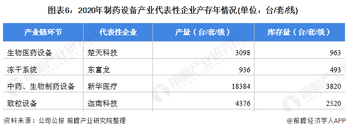 目前,布局了制药设备的上市企业中,2020Ian新华医疗在产量及库存量先于其它企业。其他制药设备产业产业链上的其它代表性企业产能/产量情况如下: