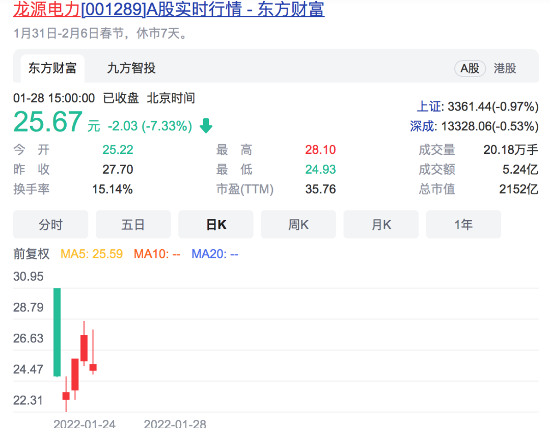 龙源电力上市首日其股价跌破开盘价,首日股价收于24.79元,相较开盘价30.95元下跌22.87%,龙源电力是全球最大风电运营企业,不同于此前华电福新等新能源企业从港股私有化退市的流程,龙源电力通过换股吸收合并的方式实现了“A+H”两地上市。