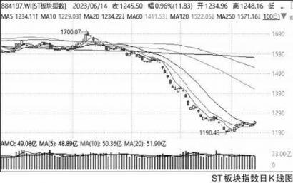 Wind数据显示,截至6月12日,A股ST板块指数今年以来累计下跌23.6%。