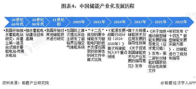 我国储能市场大致可分为三个发展阶段:一是储能萌芽期(20世纪中后期),20世纪60年代,国内开始抽水蓄能电站的研究,并建立第一座混合式抽水蓄能电站-岗南水电站,到20世纪90年代,抽水蓄能电站建设迎来高潮;二是储能发展初期(21世纪),21世纪初期,国内开始其他储能技术的研究,包含压缩空气储能等,直到2011年“十二五”规划纲要中储能作为智能电网的技术支撑在国家的政策性纲领文件中首次出现,之后储能行业政策规划陆续出台,推动储能行业发展。