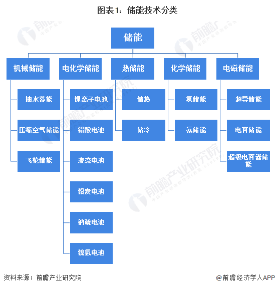 根据不同的储能技术,储能主要分为机械储能、电化学储能、热储能、化学储能、电磁储能等。利用这些储能技术,电能能以机械能、化学能、热能等形式存储下来,并适时反馈回电力网络。