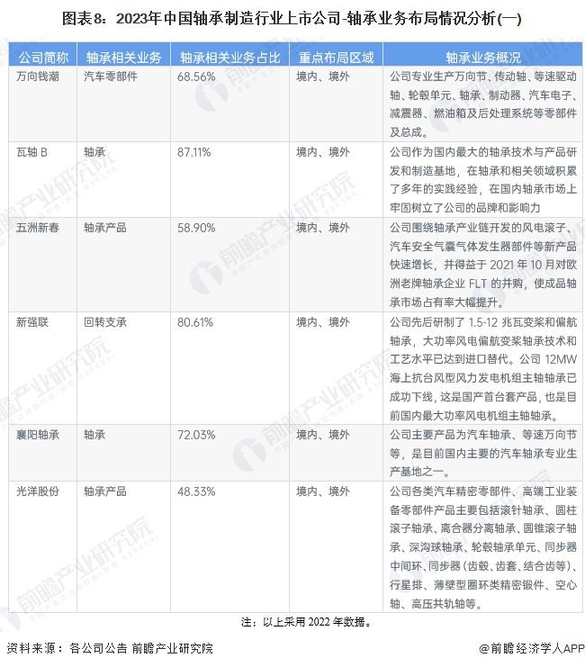 3、轴承制造行业上市公司业务布局对比
