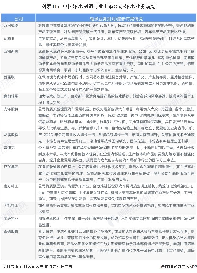 注:以上采用2022年数据。5、轴承制造行业上市公司轴承业务规划对比