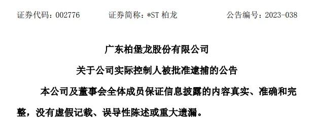 公司于2023年6月27日收到公司实际控制人陈伟雄先生、陈娜娜女士家属提供的揭阳市公安局出具的《逮捕通知书》(揭阳捕通字[2023]00091号)。获悉经揭阳市人民检察院批准,陈伟雄先生、陈娜娜女士已于2023年6月19日因涉嫌欺诈发行股票罪、违规披露、不披露重要信息罪被执行逮捕。